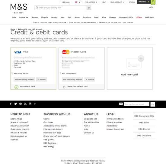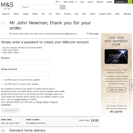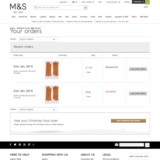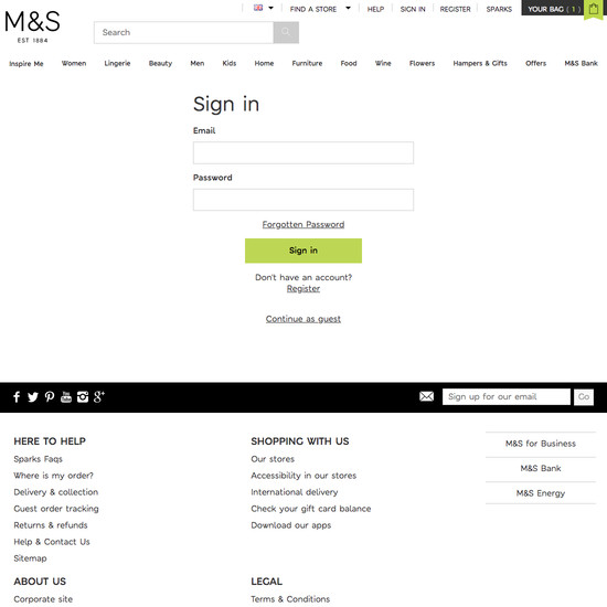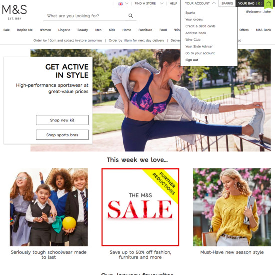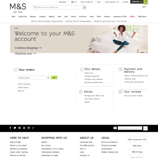 Marks & Spencer’s Accounts & Self-Service performance is mediocre. Notably, Marks & Spencer’s account performance is hampered by poor Account Sign In and Account Drop-Down, although this is helped somewhat by state of the art Account Dashboard.