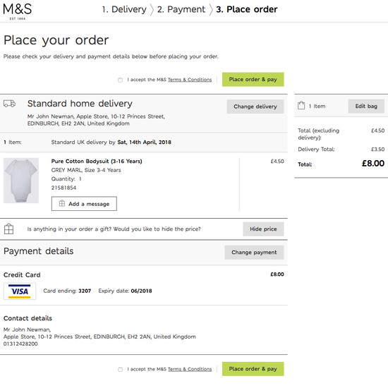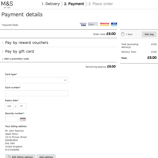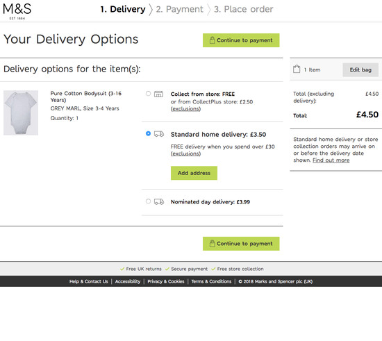 Marks & Spencer’s Cart & Checkout performance is decent. It is especially a good Order Confirmation & E-Mail, Default Values & Autocompletion, and Gifting Flow & Features that helps Marks & Spencer’s checkout UX. Do, however, watch out for their mediocre Customer & Address Information performance.