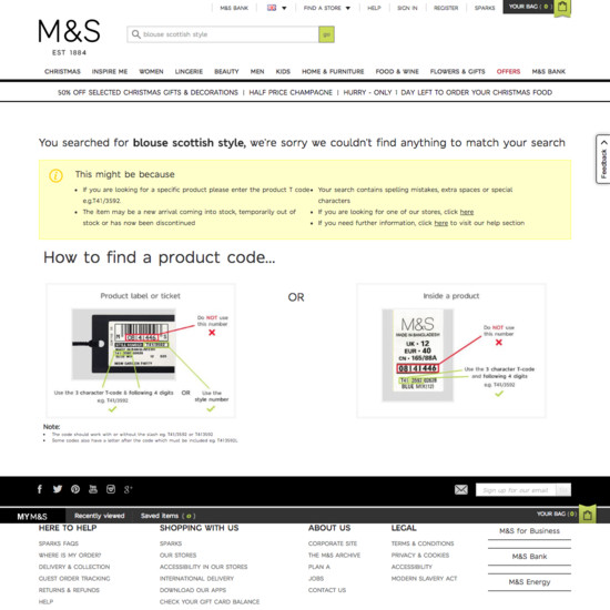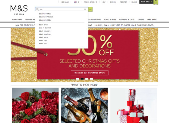 Marks & Spencer’s On-Site Search performance is mediocre. Some of Marks & Spencer’s biggest on-site search usability issues are due to broken Results Logic & Guidance. That said, their search experience performs well within Search Autocomplete.