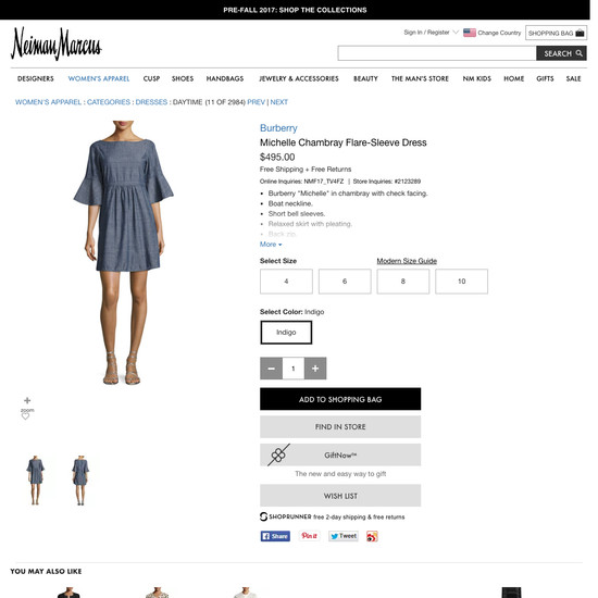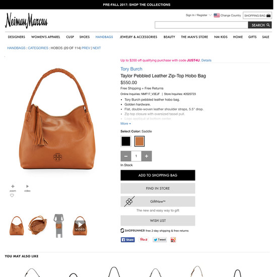 Neiman Marcus’ Product Page performance is acceptable. Notably, Neiman Marcus’ product page performance is hampered by mediocre Product Video & 360-View and Auxiliary Content, although this is helped somewhat by state of the art Shipping, Returns, and Gifting and good Product Page Layout.