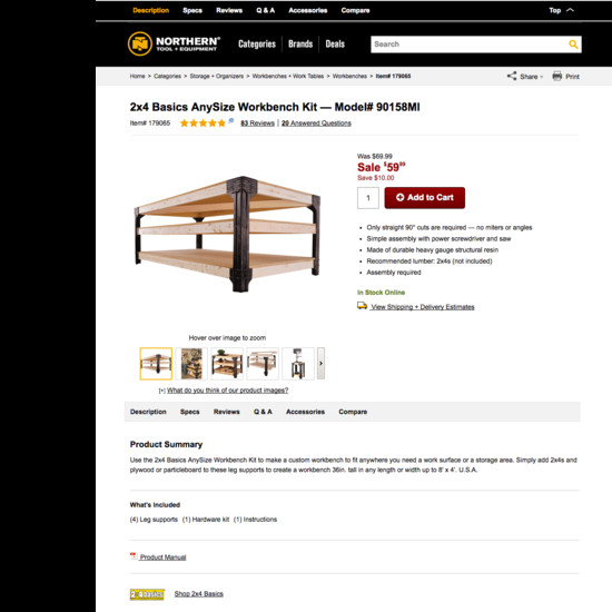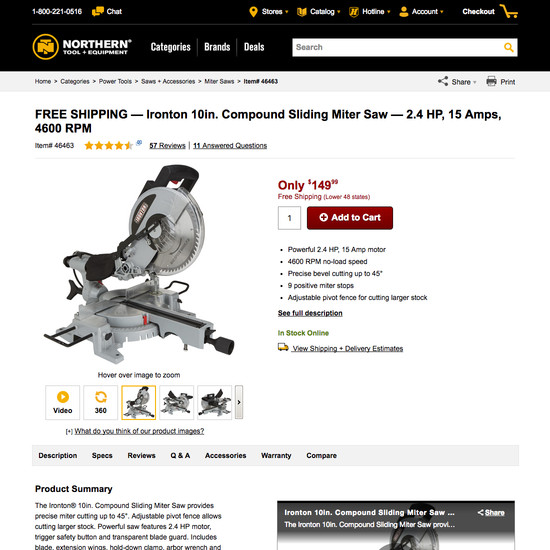Northern Tool’s Product Page performance is good. It is especially a state of the art The ‘Buy’ Section, Cross-Sells & Cross-Navigation, and Product Page Layout that helps Northern Tool’s product page UX. Do, however, watch out for their mediocre Shipping, Returns, and Gifting performance.