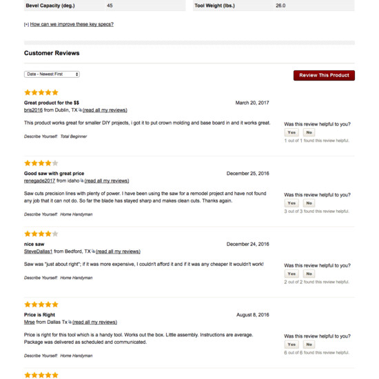 User Reviews Section