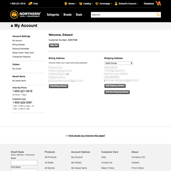Northern Tool’s Accounts & Self-Service performance is mediocre. Notably, Northern Tool’s account performance is hampered by mediocre Account Dashboard, poor Account Sign In, and poor Order Returns.