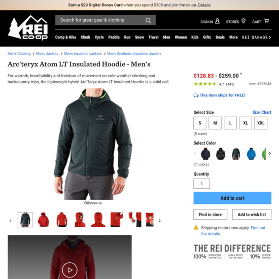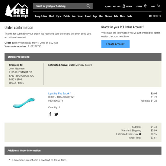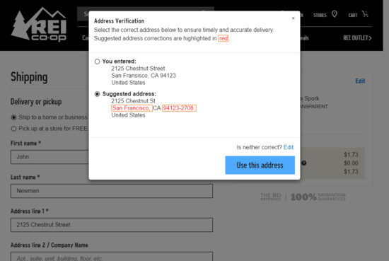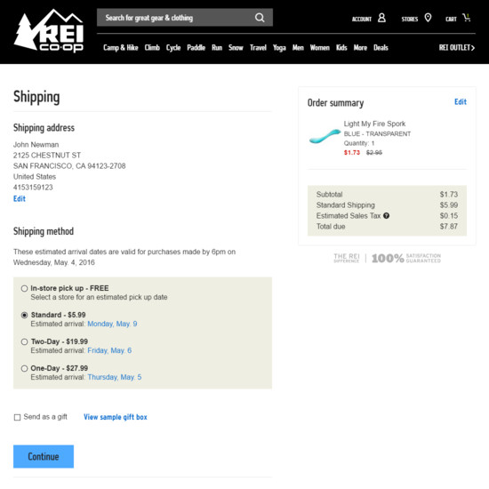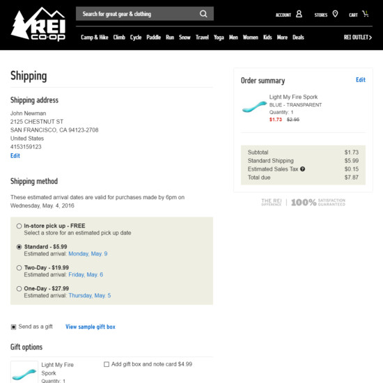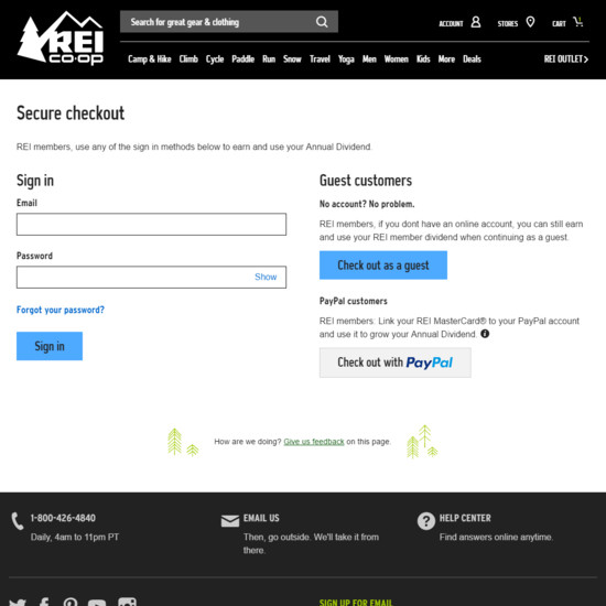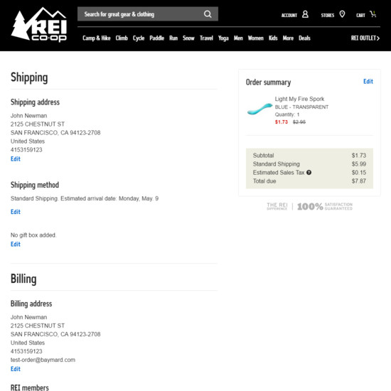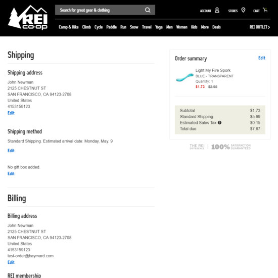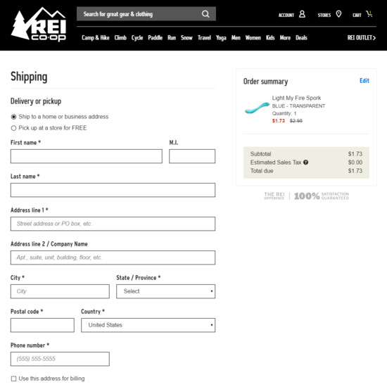 REI’s Cart & Checkout performance is mediocre. Notably, REI’s checkout performance is hampered by poor Credit Card Form and Field Design & Features, although this is helped somewhat by state of the art Cross-Sells and good Shipping & Store Pickup.