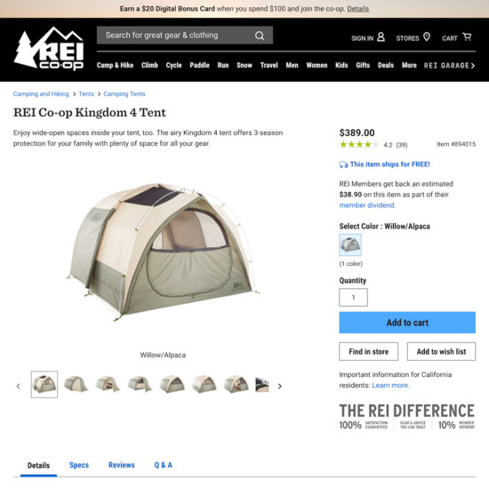 This is a case study of REI’s e-commerce user experience (UX) performance. It’s based on a full-performance review of more than 550 design elements. 59 other sites have also been benchmarked for a complete picture of the e-commerce UX landscape