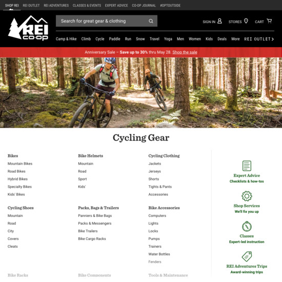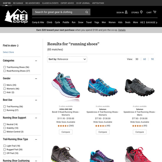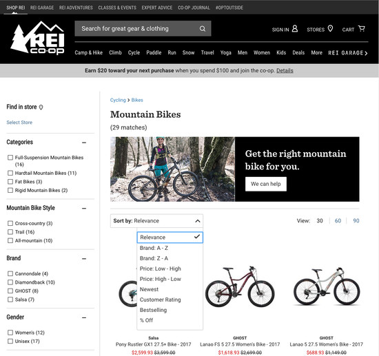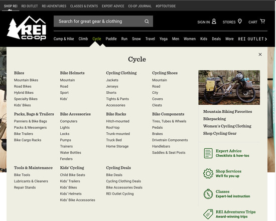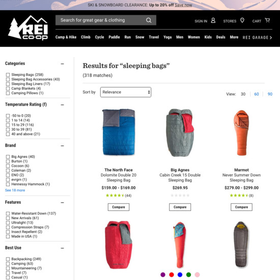 REI’s Homepage & Category performance is good. It is especially a state of the art Main Navigation, good Category Taxonomy, and decent Intermediary Category Pages that helps REI’s category UX.