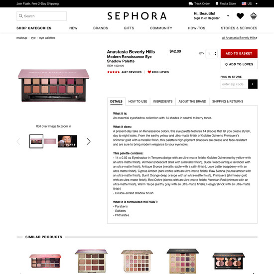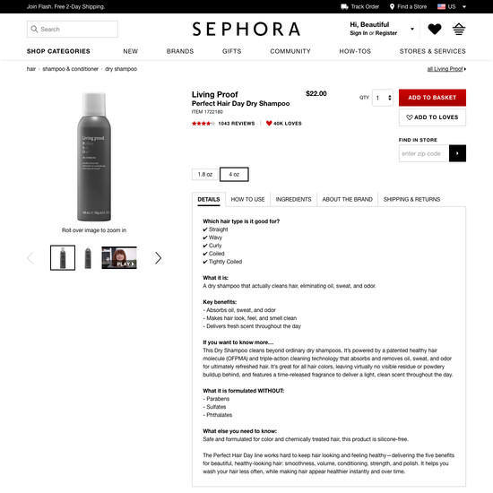 Sephora’s Product Page performance is mediocre. Notably, Sephora’s product page performance is hampered by mediocre Product Images and Specifications Sheet, although this is helped somewhat by good Product Variations and decent Image Gallery UI.