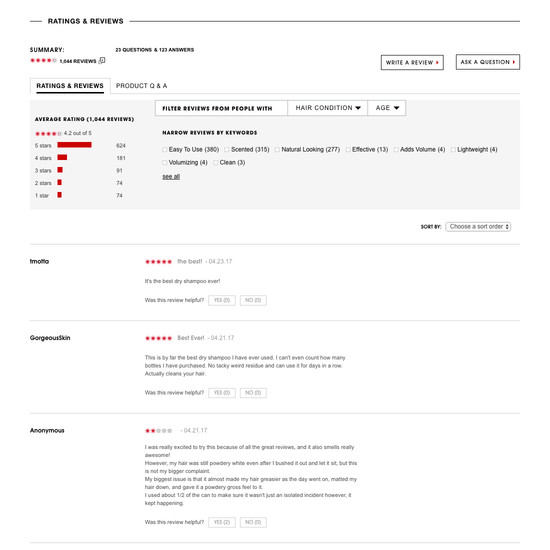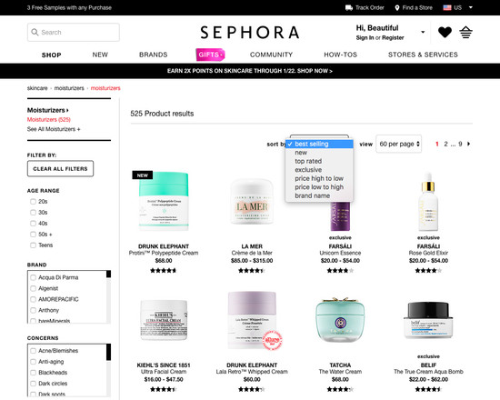 Sephora’s Product Lists & Filtering performance is acceptable. Notably, Sephora’s product list performance is hampered by broken Sorting and Filtering: Interface & Layout, although this is helped somewhat by good Comparison Tool and decent Filtering: Scope & Logic.
