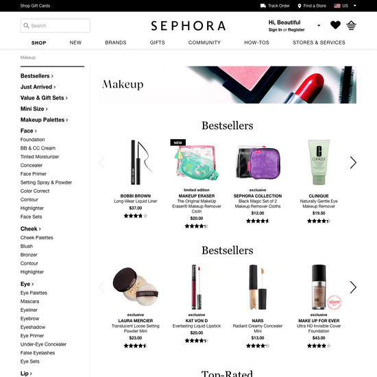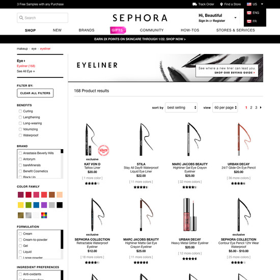Sephora’s Homepage & Category performance is decent. It is especially a state of the art Site-Wide Layout and decent Category Taxonomy that helps Sephora’s category UX. Do, however, watch out for their poor Intermediary Category Pages performance.