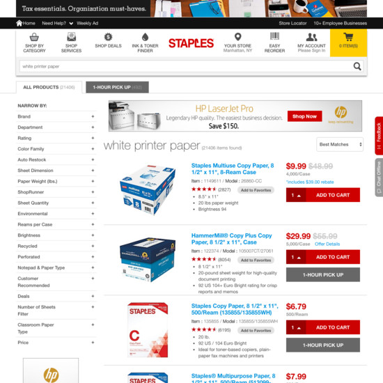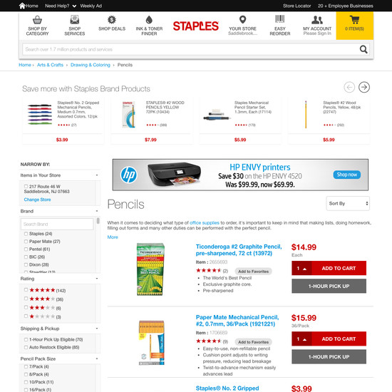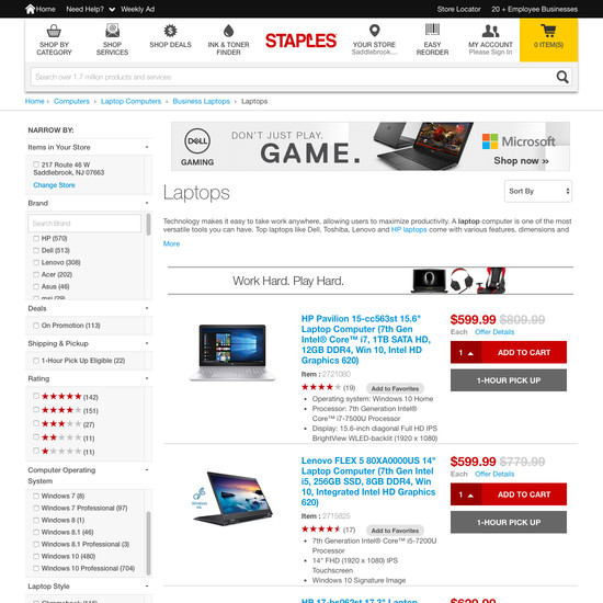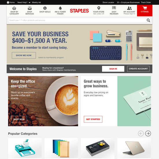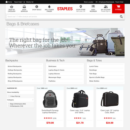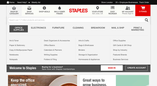 Staples’ Homepage & Category performance is acceptable. Notably, Staples’ category experience has good Category Taxonomy.