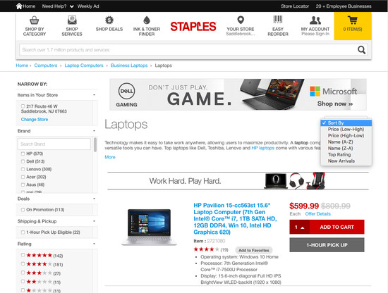 Staples’ Product Lists & Filtering performance is acceptable. Notably, Staples’ product list performance is hampered by poor List Layout and broken Filtering: Scope & Logic, although this is helped somewhat by good List Items: Personalization and Comparison Tool.