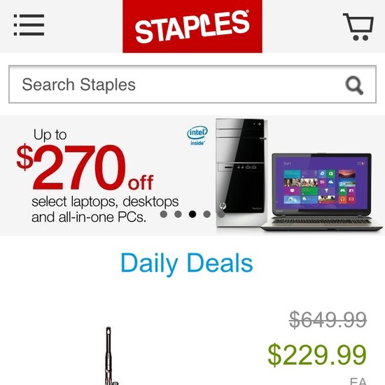 Staples’ Mobile E-Commerce performance is mediocre. Staples’ mobile design in particular suffers from usability issues caused by mediocre Mobile Product Page Layouts, Mobile Product Lists, and Mobile Shopping Cart, Cost & Account. That said, their mobile design performs well within Touch Keyboards.