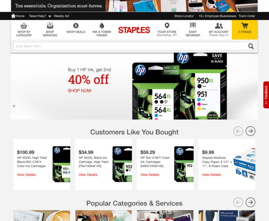 This is a case study of Staples’ e-commerce user experience (UX) performance. It’s based on a full-performance review of more than 550 design elements. 59 other sites have also been benchmarked for a complete picture of the e-commerce UX landscape