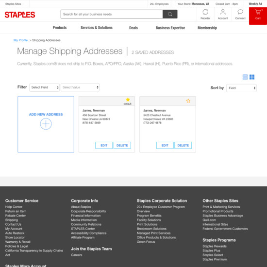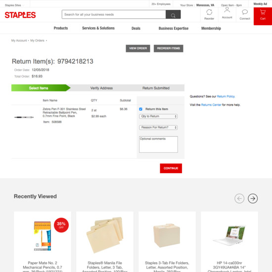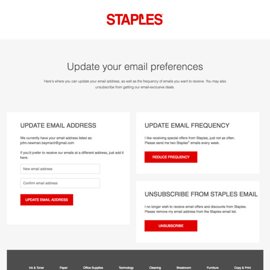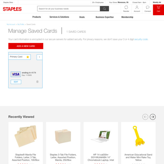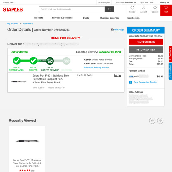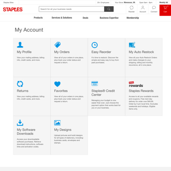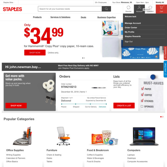 Staples’ Accounts & Self-Service performance is acceptable. For instance, Staples’ account experience has decent ‘Your Account’: Addresses, Payments, & Newsletters and Account Drop-Down yet suffers from poor Order Returns.