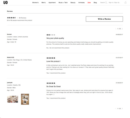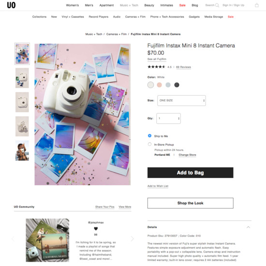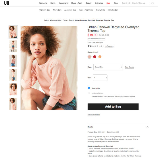 Urban Outfitters’ Product Page performance is mediocre. Notably, Urban Outfitters’ product page performance is hampered by mediocre Specifications Sheet and poor Product Page Layout, although this is helped somewhat by good Image Gallery UI and Product Images.