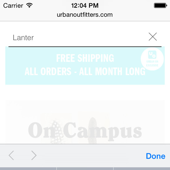 Urban Outfitters’ Mobile E-Commerce performance is mediocre. Urban Outfitters’ mobile design is particularly thwarted by usability issues related to mediocre Mobile Checkout Information, Mobile Form Field Usability, and Mobile Filtering & Sorting.
