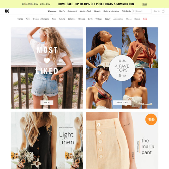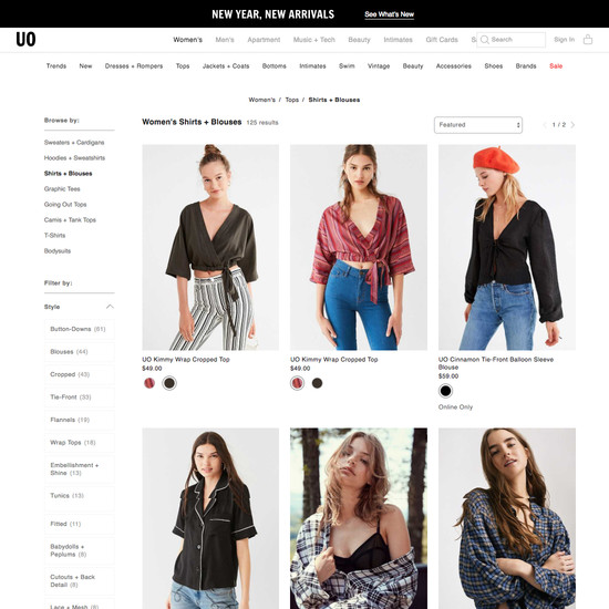 Urban Outfitters’ Homepage & Category performance is decent. For instance, Urban Outfitters’ category experience has good Site-Wide Layout and decent Main Navigation yet suffers from poor Intermediary Category Pages.