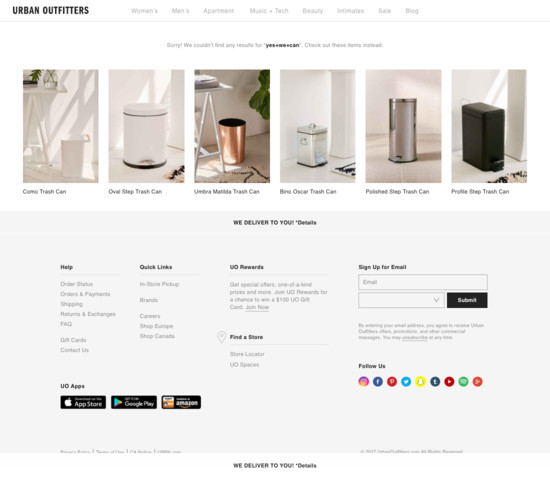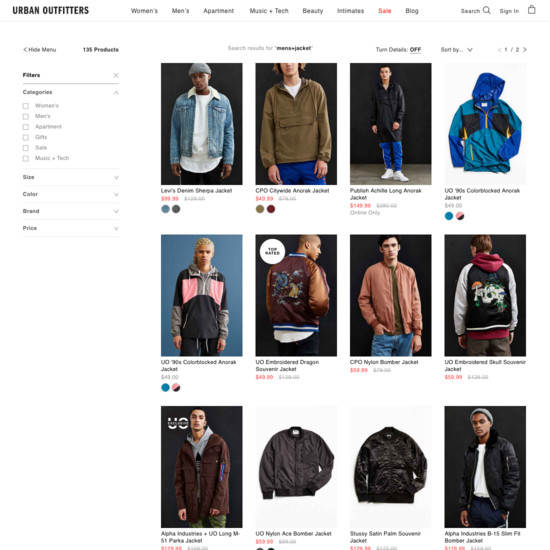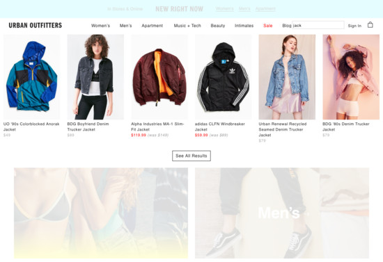 Urban Outfitters’ On-Site Search performance is broken. Urban Outfitters’ search experience in particular suffers from usability issues caused by poor Search Form & Logic, Search Autocomplete, and Results Layout & Filtering.