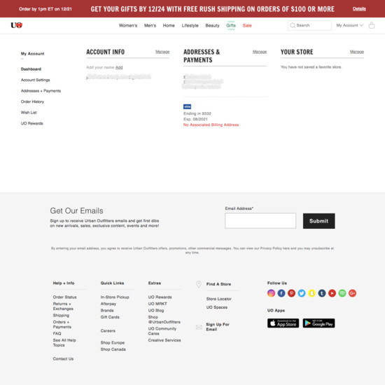 Urban Outfitters’ Accounts & Self-Service performance is acceptable. Notably, Urban Outfitters’ account performance is hampered by broken Orders & Order Tracking and Account Dashboard, although this is helped somewhat by state of the art Account Sign In and Account-Wide Navigation, Structure, & Information.