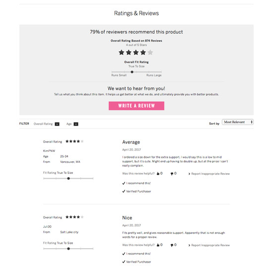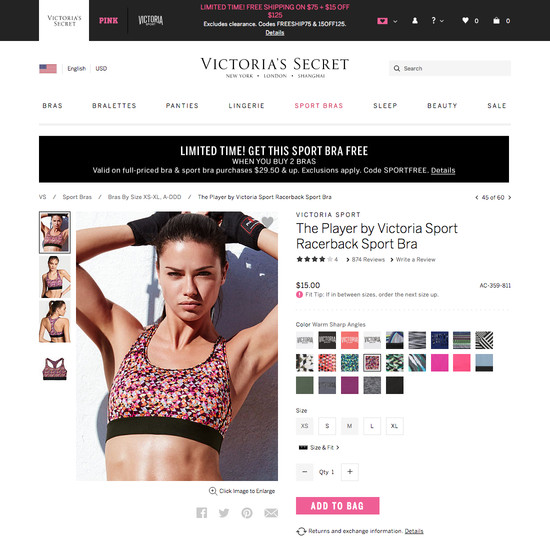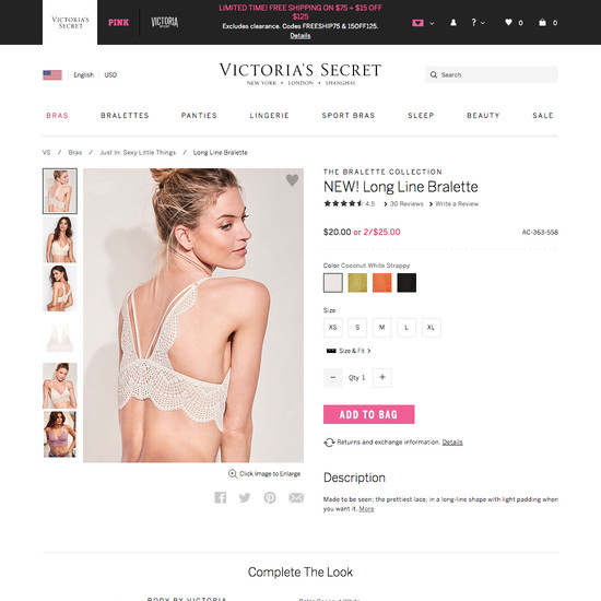 Victoria’s Secret’s Product Page performance is mediocre. Notably, Victoria’s Secret’s product page performance is hampered by mediocre Specifications Sheet and Auxiliary Content, although this is helped somewhat by good Image Gallery UI and Product Variations.
