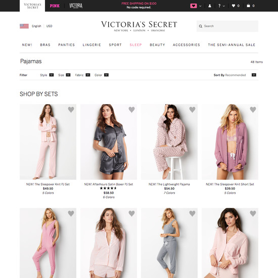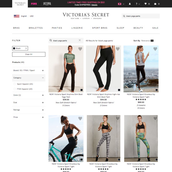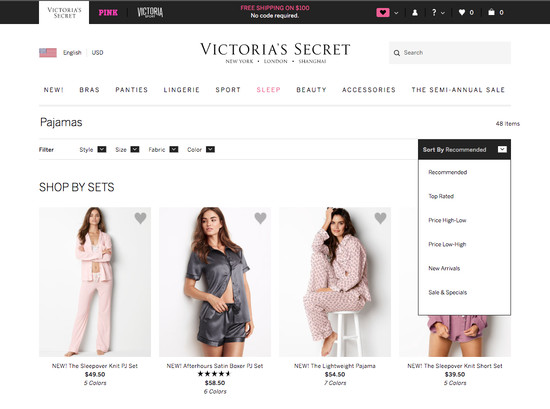 Victoria’s Secret’s Product Lists & Filtering performance is decent. For instance, Victoria’s Secret’s product listings have state of the art Loading Products and good Comparison Tool yet suffer from mediocre List Items: Personalization and poor List Items: Interface & Hit Areas.