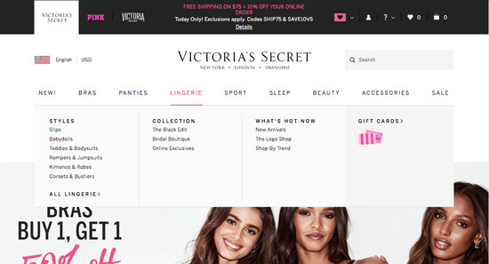 Victoria’s Secret’s Homepage & Category performance is decent. For instance, Victoria’s Secret’s category experience has state of the art Main Navigation yet suffers from poor Intermediary Category Pages.