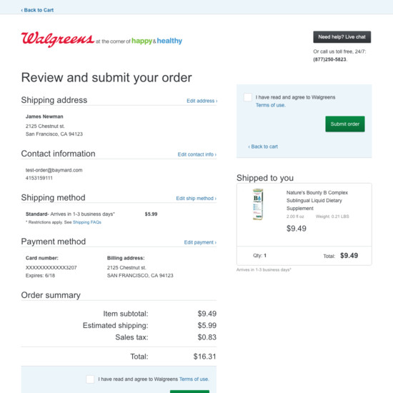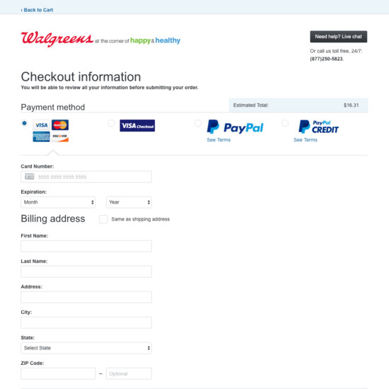 Walgreen Co.’s Cart & Checkout performance is mediocre. Notably, Walgreens’ checkout performance is hampered by mediocre Validation Errors & Data Persistence and Shopping Cart & “Added to Cart” Behavior, although this is helped somewhat by good Cross-Sells and decent User Interactions & Distractions.