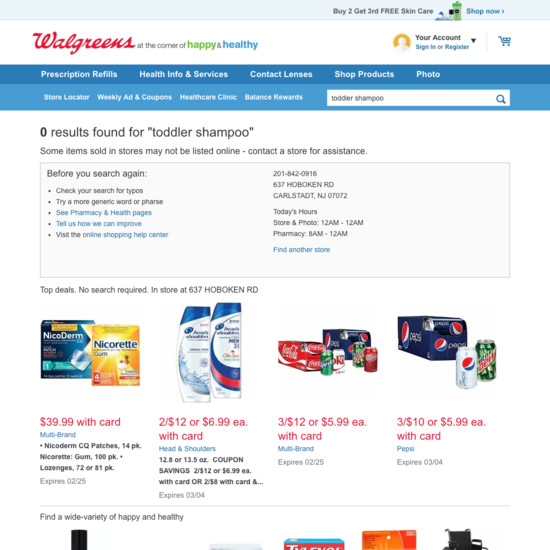 Walgreen Co.’s On-Site Search performance is mediocre. Notably, Walgreens’ on-site search performance is hampered by mediocre Results Logic & Guidance and Results Layout & Filtering, although this is helped somewhat by decent Search Query Types.