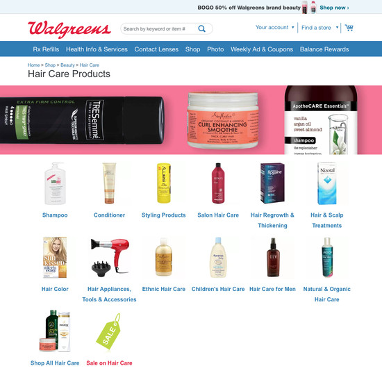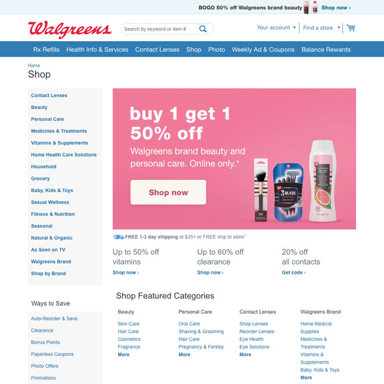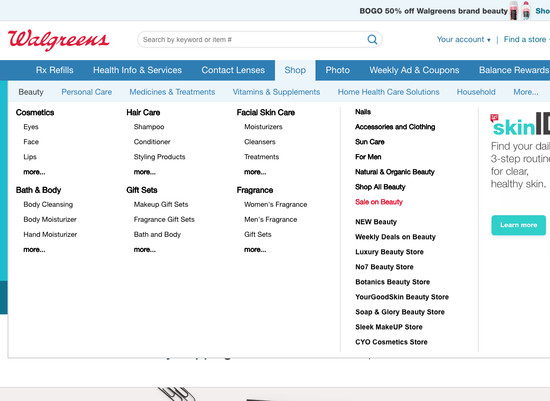 Walgreen Co.’s Homepage & Category performance is decent. For instance, Walgreen Co.’s category experience has good Category Taxonomy and Site-Wide Layout yet suffers from poor Homepage.
