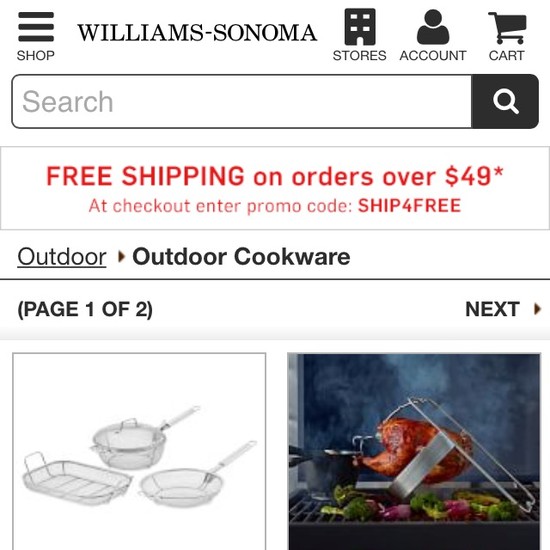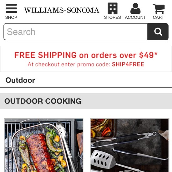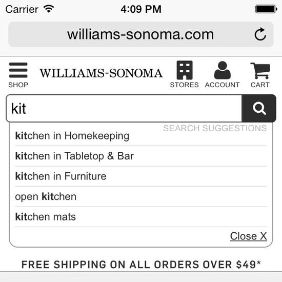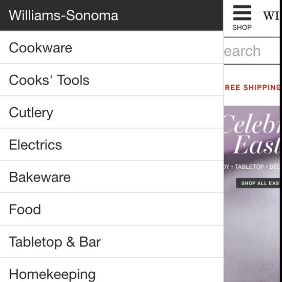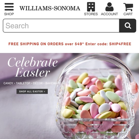 Williams-Sonoma’s Mobile E-Commerce performance is mediocre. Williams-Sonoma’s mobile design is particularly thwarted by usability issues related to mediocre Mobile Shopping Cart, Cost & Account, poor Mobile Product Page Layouts, and poor Mobile Product Descriptions, Specs, & Images. That said, their mobile design performs great within Touch Keyboards.