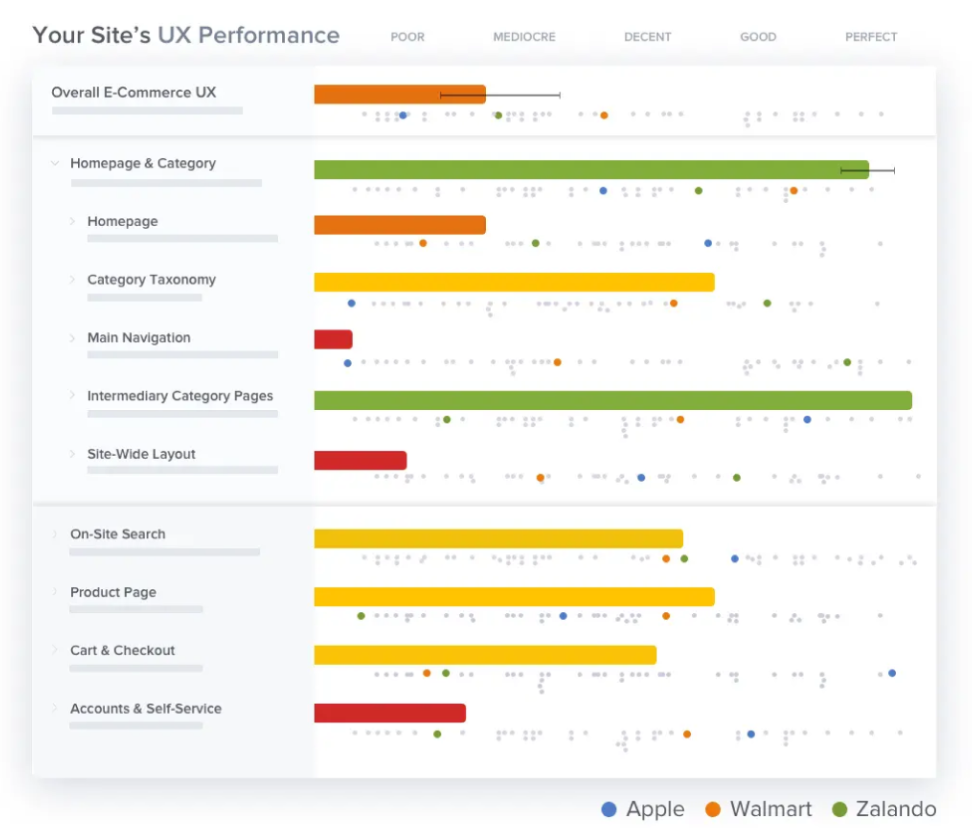 - Compare your UX to the industry leaders as well as your competitors — find out where you fall behind and how to fix it