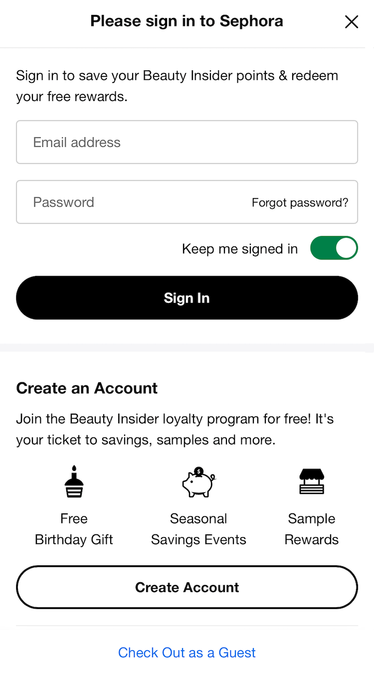 Allowing users to check out as a “guest” is key to avoiding unnecessary abandonments, as many users will refuse to create an account simply to check out.